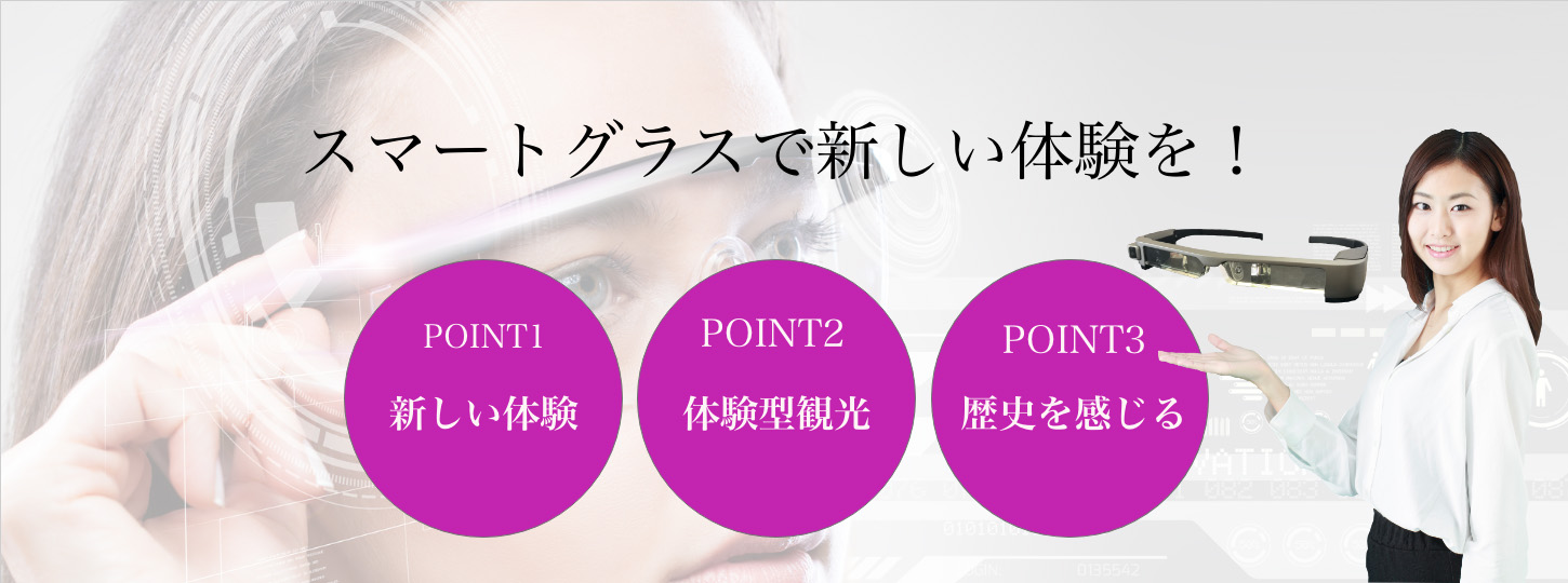ただ「訪れる」「見る」だけではなく、スマートグラスのAR技術による映像や画像で、より詳しい体験観光が可能になります。